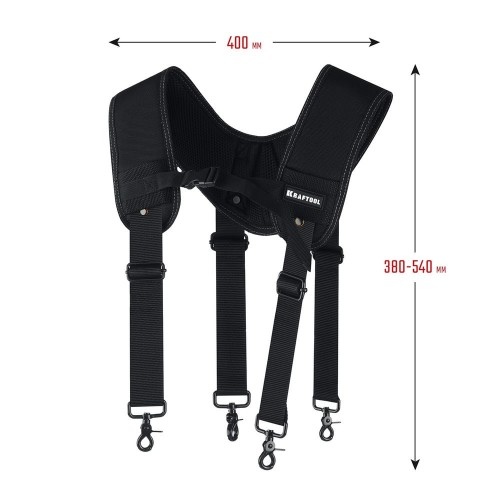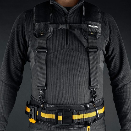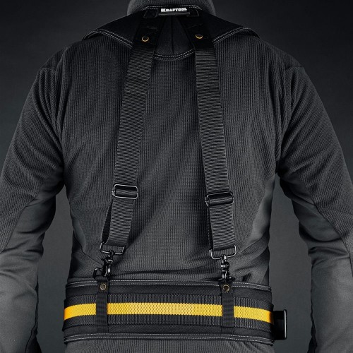Подтяжки регулируемые KRAFTOOL 38765 предназначены для фиксации пояса монтажника. Регулируемые по длине. 4 точки крепления делают их совместимым практически с любым ремнем. Широкие наплечные ремни равномерно распределяют вес инструментов. Выполнены из высокопрочного полиэстера 1680D.