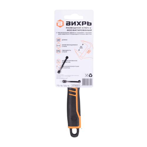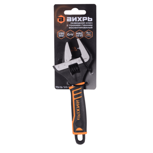 Разводной ключ с тонкими губками, фосфатированный, 150 мм, Вихрь