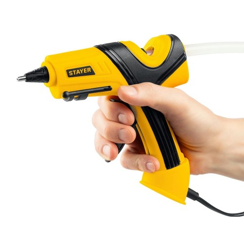 Клеевой пистолет STAYER 0681-20, применяется для склеивания различных материалов: древесины, металла, керамики, стекла, пластмассы, кожи, ткани при помощи разогретого клея. Диапазон рабочих мощностей - 12–16 Вт.