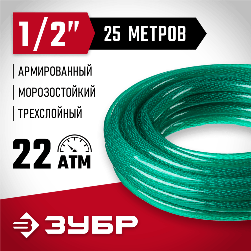 ЗУБР Ø 1/2" x 25 м, 22 атм., 3-x слойный, армированный, шланг поливочный 40311-1/2-25