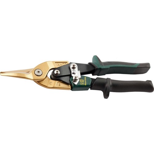 Ножницы по металлу KRAFTOOL 2327-S, применяются для прямой и фигурной резки (в правую или левую сторону) листовых материалов из стали повышенной твердости, нержавеющей стали, цветных металлов. Изготовлены из инструментальной стали. Титановое покрытие увеличивает ресурс и обеспечивает длительную и качественную работу. Кованные губки из высококачественной хромомолибденовой стали. Индукционная закалка лезвий до твердости 62 – 65 HRC. Режущие кромки с насечкой предотвращают проскальзывание материала при выполнении реза. Двухрычажная конструкция шарнира увеличивает режущую способность на 60%. Двухкомпонентные рукоятки обеспечивают удобство и надежный захват при работе.