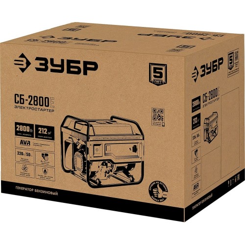 Бензиновый электрогенератор ЗУБР СБ-2800Е, предназначен для обеспечения электрической энергией потребителей в отсутствии электрической сети, а также для использования в качестве резервного или аварийного источника электрической энергии. Система поддержания параметров выходного напряжения (AVR) обеспечивает стабильность характеристик для питания, в том числе наиболее требовательных потребителей. Раздельные системы питания и смазки избавляют от необходимости приготовления рабочей смеси. Система контроля и блокировки работы при отсутствии или пониженном уровне масла. Автоматические предохранители в каждой цепи защищают изделие и потребителей от перегрузок и коротких замыканий.