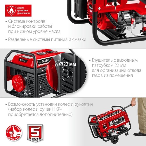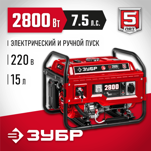 ЗУБР 2800 Вт, бензиновый генератор с электростартером (СБ-2800Е)