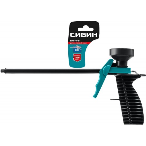 Пистолет для монтажной пены СИБИН 06875, предназначен для профессионального применения, отличающийся герметичностью, высокой надежностью и удобством в работе. Корпус компактный и химически стойкий. Защита от капель. Материал ствола - нержавеющая сталь.