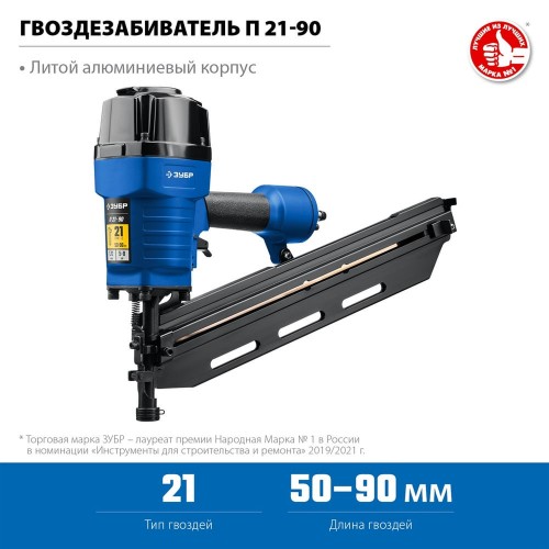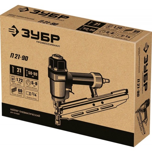 ЗУБР тип 21 (50-90 мм), нейлер (гвоздезабиватель) пневматический для гвоздей 31931