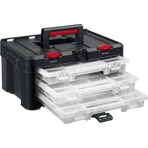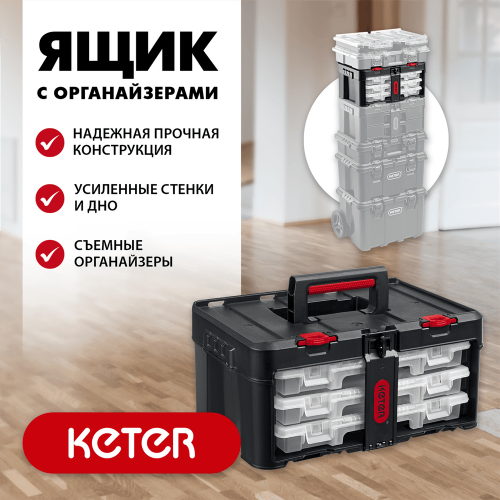 Пластиковый ящик с органайзерами KETER STACKNROLL 38406 применяется для хранения и транспортировки инструмента. Изготовлен из ударопрочного пластика. Поворотный замок для фиксации органайзеров. Мобильная модульная система для хранения и транспортировки. Надежная фиксация элементов друг с другом.