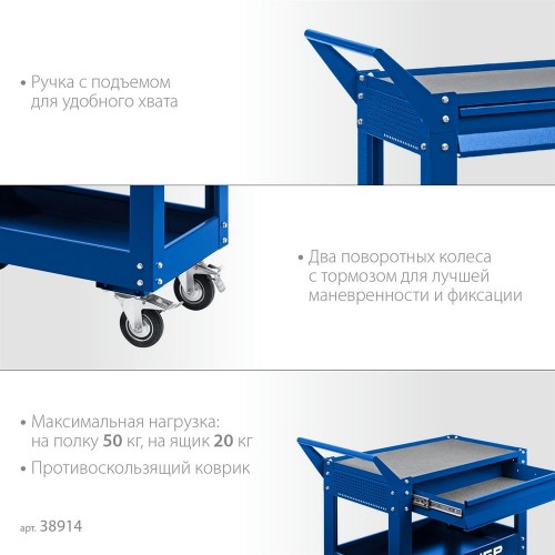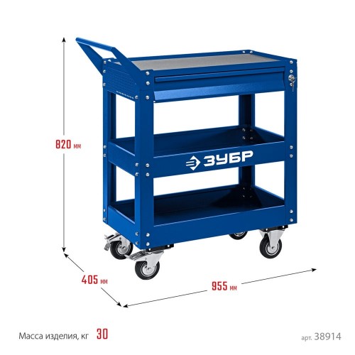 Тележка инструментальная ЗУБР 38914, предназначена для организованного хранения инструмента. Профессиональная тележка позволит Вам комфортно организовать рабочее место с легким доступом ко всем инструментам.