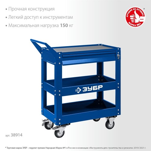 Тележка ЗУБР позволит комфортно организовать рабочее место с легким доступом ко всем инструментам.