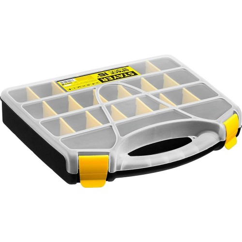 Органайзер STAYER 38038-15_z01, применяется для хранения инструментов и принадлежностей. Большое количество ячеек и возможность их регулирования по ширине позволяет организовать удобное хранение инструментов и принадлежностей.