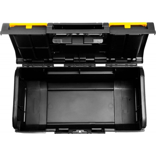 Ящик для инструмента STAYER 38167-19, применяется для хранения инструментов и принадлежностей. Вместительный функциональный ящик поможет организовать удобное хранение инструментов и принадлежностей. Съемная полка для размещения мелких предметов или самых востребованных инструментов. Встроенный органайзер для хранения метизов и расходных материалов.