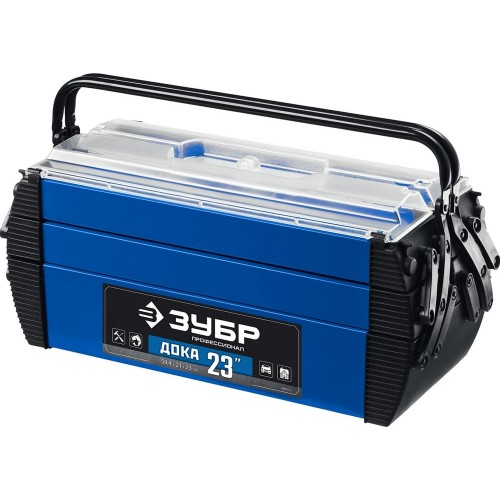 Ящик для инструмента ЗУБР 38163-23_z01, применяется для хранения инструментов и принадлежностей. Ящик с раздвижными полками позволяет организовать удобное хранение инструмента и доступ к нему. Широкая ручка помогает сместить центр тяжести ящика, что обеспечивает удобство и комфорт переноски. Металлический корпус. Широкая металлическая ручка для регулировки центра тяжести ящика при переноске. Металлические замки для надежного запирания ящика во время переноски.
