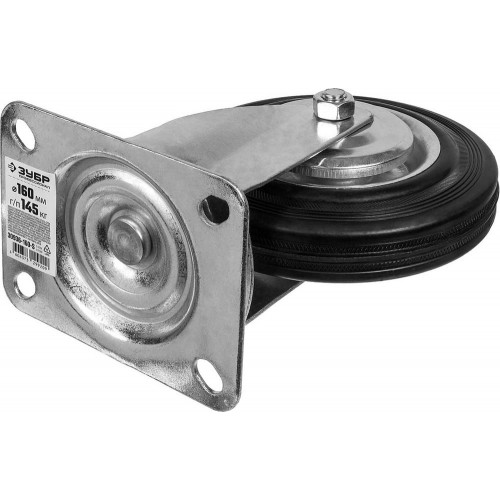 Колесо поворотное ЗУБР 30936-160-S применяются для перемещения тележек и легковесного оборудования. Рекомендуется для полов с неровностями и препятствиями, а также для использования внутри помещений и на улице. Колесные опоры обеспечивают удобное перемещение тележек и контейнеров легкой и стандартной грузоподъемности, легковесного оборудования, строительных лесов и прочих конструкций. Благодаря износостойким материалам колесные опоры находят применение как в помещениях, так и вне их, легко преодолевают различные препятствия, не повреждают напольные покрытия. Крепежная платформа свободно вращается благодаря шариковому подшипнику. Благодаря этим свойствам, подходят для применения на промышленных предприятиях, в общественных учреждениях и т.п. Стальной штампованный диск обеспечивает повышенную прочность. Игольчатый подшипник обеспечивает легкость вращения колеса. Специальная прокладка предотвращает попадание пыли в полость шарикового подшипника на опоре. Цинковое покрытие надежно защищает изделие от коррозии.