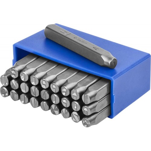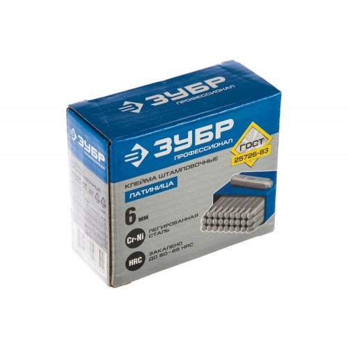 Клейма ЗУБР 21505-06_z01, предназначены для нанесения штампов в виде буквенных символов на различные поверхности. Профессиональные клейма «ЗУБР» со специальным никелированным покрытием обладают повышенным ресурсом. Применяются в промышленности, коммунальном секторе, профессионалных и личных мастерских. Изготовлены из высококачественной легированной хромом инструментальной стали. Специальная закалка до твердости 60–65 HRC.