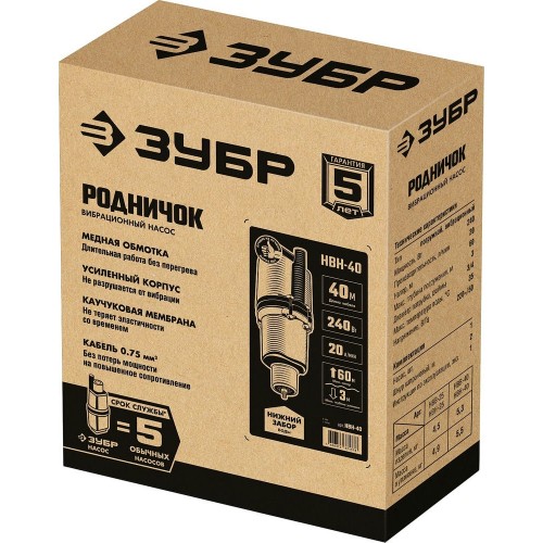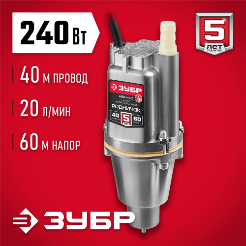 Насос вибрационный ЗУБР НВН-40, предназначен для перекачивания жидкостей. Может использоваться при осушении емкостей, для забора воды из скважин и колодцев, осушения затопленных мест, откачки воды из подвалов, аэрации и циркуляции воды в течение ограниченного периода времени.