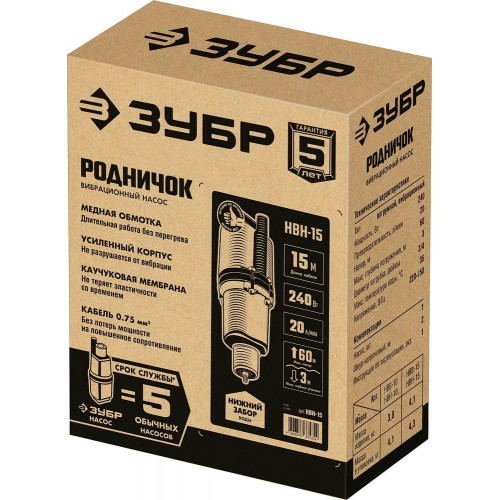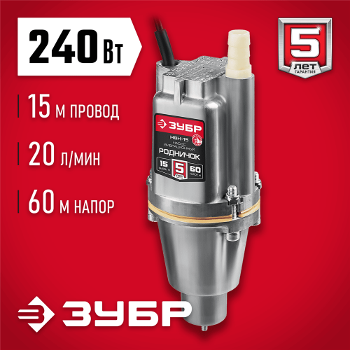 Насос вибрационный ЗУБР НВН-15, предназначен для перекачивания жидкостей. Может использоваться при осушении емкостей, для забора воды из скважин и колодцев, осушения затопленных мест, откачки воды из подвалов, аэрации и циркуляции воды в течение ограниченного периода времени.