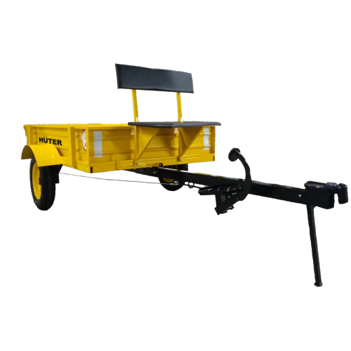 Прицепы для мотоблоков - предназначены для перевозки сельскохозяйственных, строительных и прочих грузов. Для размещения пользователя предусмотрено сидение. Прицеп оснащен пневматическими шинами, ленточными тормозами и разборной рамой. Преимуществом прицепов HUTER является откидной задний борт и функция самосвального опрокидывания борта.