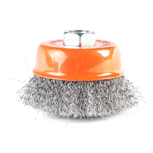 чашеобразная проволочная щетка для УШМ для снятия лака; краски;  зачистки ржавчины;  Наружный диаметр: 75мм;  посадка:  М14; стальная гофрированная проволока