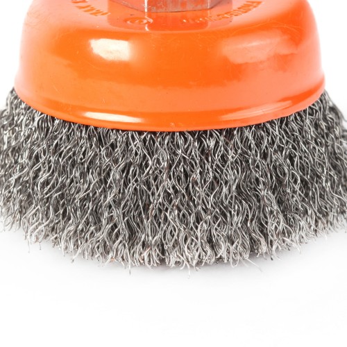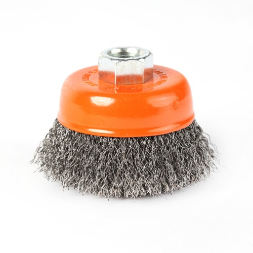 чашеобразная проволочная щетка для УШМ для снятия лака; краски; зачистки ржавчины; Наружный диаметр: 100мм; посадка: М14; стальная гофрированная проволока