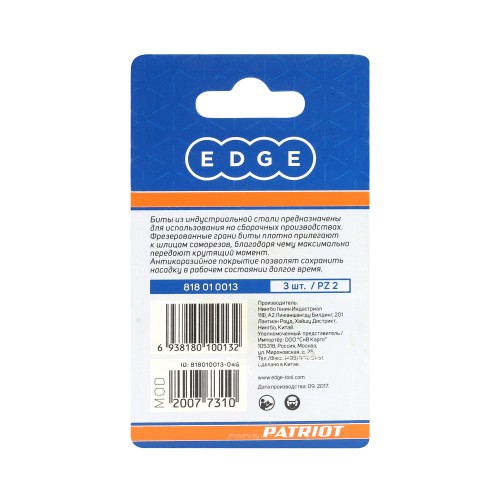 Фрезерованная бита из индустриальной стали PZ2 х 25 мм, 3шт в блистере