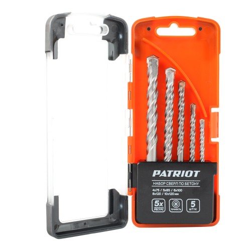 Набор сверл по бетону, 5 шт: 4x75мм, 5x85мм, 6x100мм, 8x120мм, 10x120мм в боксе. Обрабатываемый материал: бетон, кирпич.
