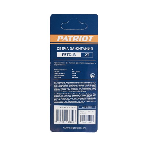 L=19mm; M14*1,25 mm; шестигранник 21; калильное число 5; медный электрод.