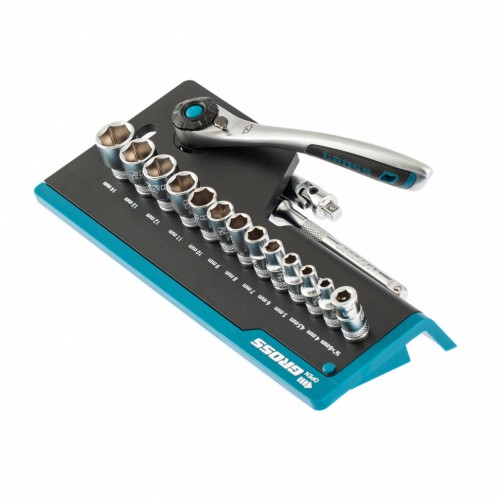 - Набор комплектуется трещотками с реверсом и быстрым сбросом, трещоточный механизм имеет 120 зуба и обеспечивает исключительную мягкость и плавность в работе.