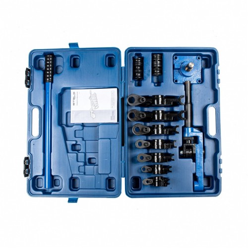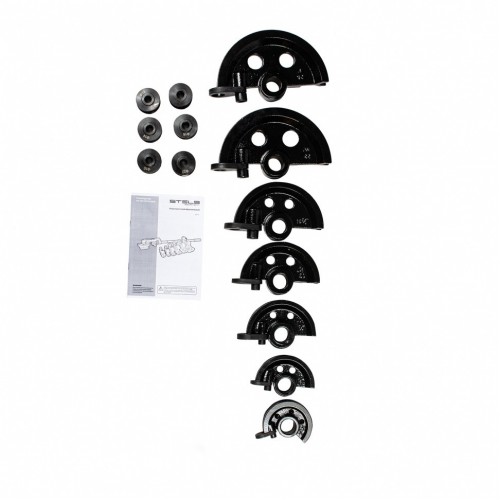 - В комплект входит 7 насадок, которые позволяют сгибать трубы диаметром 3/8-1 дюйма и толщиной стенок до 2 мм.