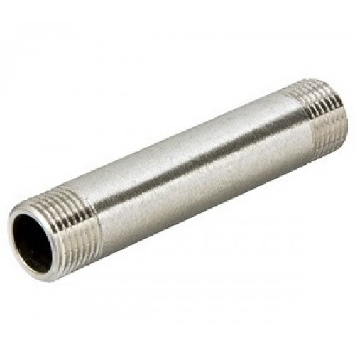 Латунный никелированный резьбовой фитинг с двухсторонней наружной трубной цилиндрической резьбой по ГОСТу 6357 (ISO 228, EN 10226). Длина – от 60 до 250 мм, диаметр – 1/2".