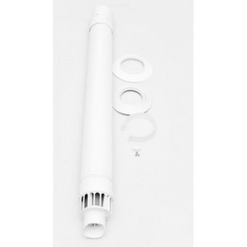 Комплект коаксиальный Ø60/100 - 1000 мм (без отвода 90°) для горизонтального монтажа. Состав: удлинение для отвода продуктов сгорания/притока воздуха Ø60/100 длиной 1000 мм из AL/PPS; соединительный хомут; оголовок дымохода; декоративные манжеты из EPDM (внутренняя и внешняя); прокладки и крепежные винты.