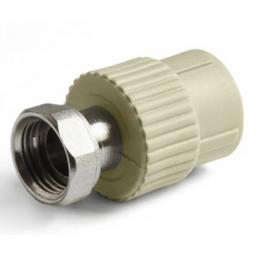 • Муфта комб. с метал. встав. и нак. гайкой PP-R Ø20х3/4" PRO AQUA Серый (4/160)