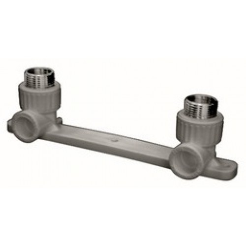 Комплект настенный для смесителя представляет из себя комбинированный полипропиленовый фитинг. Используется для монтажа к трубопроводу и установки смесителя непосредственно на стене. Латунные части производятся методом горячего штампования, пластиковые - методом литья под давлением.