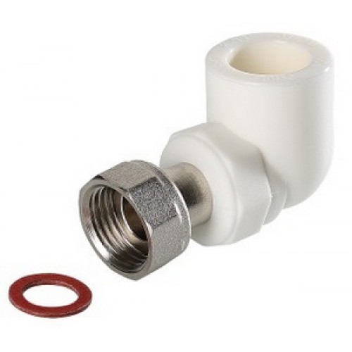 Двухсторонний полипропиленовый фитинг для соединения под углом 90° друг к другу полипропиленового трубопровода и компонента инженерной системы с резьбовым подключением. Монтаж осуществляется с помощью накидной гайки. Резьба – внутренняя трубная по ГОСТу 6357.