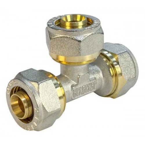 Тройник - обжимной фитинг для соединения трех металлополимерных труб