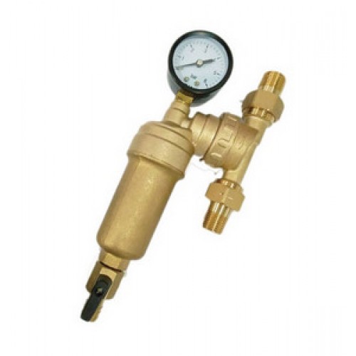 Фильтр промывной для гор.воды с манометром Ø1/2 " с поворотн. фланцем нар./нар. TIM