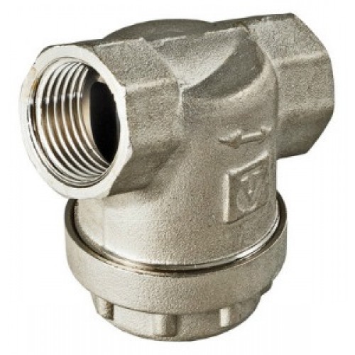 Универсальный фильтр механической очистки. Направление движения жидкости или газа – любое. Благодаря колбе, повернутой навстречу потоку, пригоден для установки на вертикальных участках трубопровода при движении потока снизу–вверх. Корпус и пробка фильтра выполнены из латуни марки CW617N (европейский стандарт EN 12165), никелированы. Между ними имеется прокладка из EPDM. Пробка оснащена отверстием для пломбировки. Размер задерживаемых частиц – от 300 мкм. Максимальная рабочая температура фильтруемой среды – 110 °C. Максимальное рабочее давление – 16 бар. Резьба присоединения – внутренняя, 1/2".