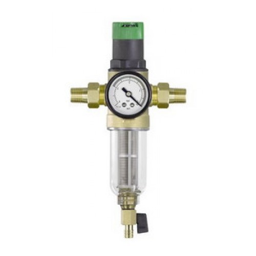 Фильтр промывной для холодной воды с манометром и редуктором давления Ø3/4" нар./нар. TIM