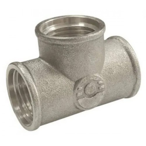 Латунный трехсторонний фитинг, равнопроходной, соединяющий три отрезка трубы, один из которых устанавливается перпендикулярно двум другим. Резьба - внутренняя/внутренняя/внутренняя цилиндрическая трубная по ГОСТу 6357-81. Фитинги рассчитаны на рабочее давление (PN) 2,5 и 4,0 МПа и температуру транспортируемых сред от -20 до +150 °С.