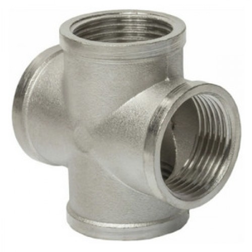 Крестовина с никелевым покрытием (внутр.) — латунный четырехсторонний фитинг, равнопроходной. Резьба — внутренняя, цилиндрическая трубная по ГОСТу 6357-81.