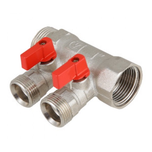 Коллектор с отсекающими кранами 2 выхода Ø1"х3/4" евроконус VALTEC (30)
