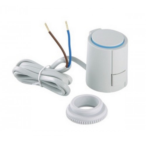 Привод для автоматического управления радиаторным или коллекторным термостатическим клапаном систем водяных теплых полов и охлаждения зданий по управляющему сигналу от комнатного термостата или контроллера. Действие основано на расширении жидкости (толуола) в сильфоне при протекании электрического тока через встроенный нагревательный элемент. Нормально закрытый. Напряжение питания – 220 В (50 Гц). Присоединение сервопривода к клапану – через переходник (в комплекте).