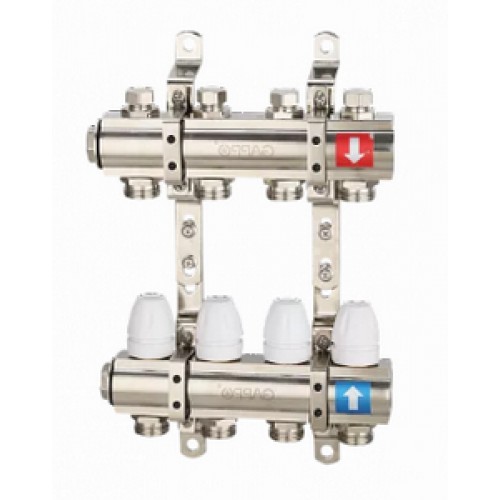 Коллекторная группа (латунь) без расходомеров без ВО и дренажных кранов 4 выхода Ø1" GAPPO