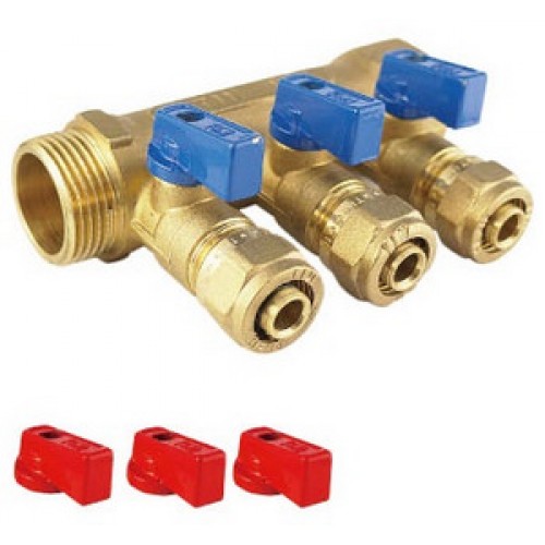 Коллектор с отсекающими кранами 3 выхода Ø1"х 20 цанга TIM (6)