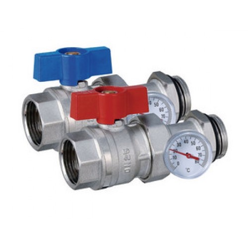 • Кран прямой+тройник под термометр+термометр красная и синяя бабочка TIM
