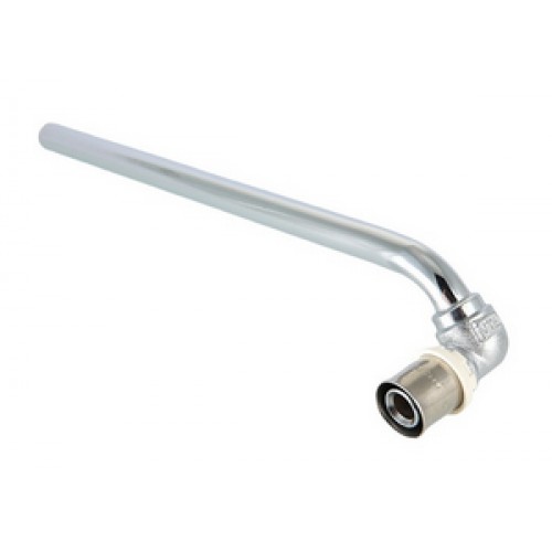 (VTm.281.N) Угловой пресс-фитинг с хромированной латунной трубкой (наружный диаметр – 15, толщина стенки – 1 мм) для подключения отопительного прибора к разводке из металлополимерных труб.