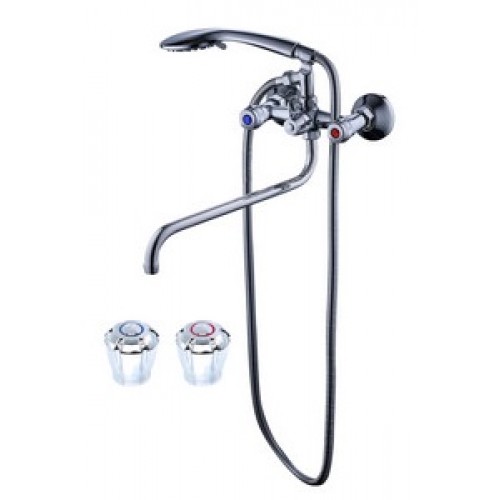 Смеситель для ванны лат. длин. кругл. S-излив встроен.диверт. КС 870142