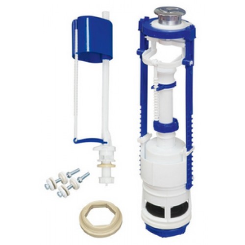 Арматура АС-12.1М кнопочная 2-х уровневая с клапаном АН-01 нижней подводки воды. Данная арматура качественно отличается от штоковых арматур, при этом она включает в себя лучшие их качества. Арматура универсальная: устанавливается и в "средние" бачки (высота до крышки бачка от 310 мм до 390 мм), и "высокие" (высота до крышки бачка 420 мм).