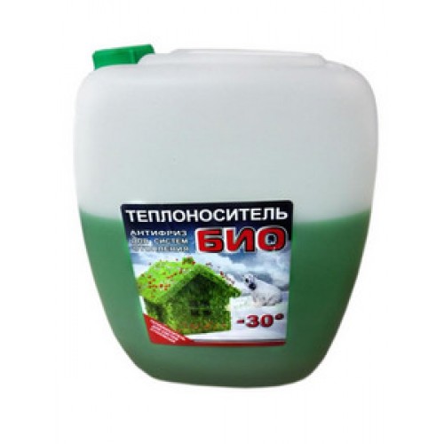 Теплоноситель БИО на основе глицерина применяется в автономных системах отопления, негорючий, экологически чистый. Обеспечивает безопасную и высокоэффективную работу системы отопления, систем вентиляции и кондиционирования. Используется для систем отопления закрытого и открытого типа. При вынужденных остановках в зимний период, жидкость не замерзает, позволяя производить ремонт и замену элементов системы. Теплоноситель БИО в случае аварийной остановки системы не расширяется и не портит систему отопления, а флюорисцентный краситель входящий в состав теплоносителя позволит быстро выявить место протекания в системе.