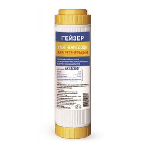 АкваСофт — композитный картридж, удаляет из воды избыточные соли жесткости. Фильтрующей средой служит специальная смесь ионообменных смол питьевого класса. Это позволяет равномерно распределить ресурс загрузки на весь период работы.