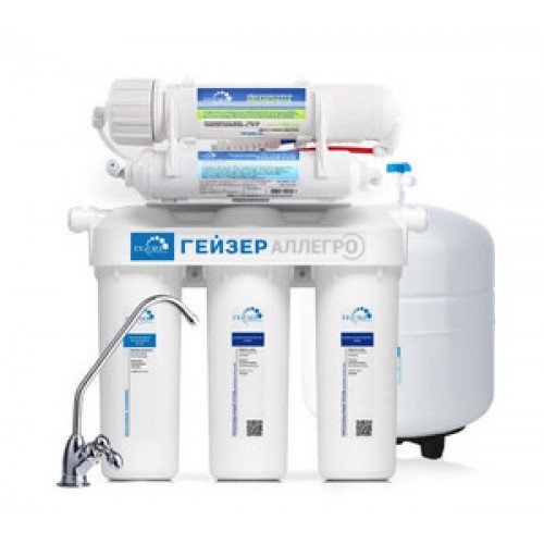 Фильтр Гейзер-Аллегро используется для глубокой очистки водопроводной воды методом обратного осмоса от солей жесткости, тяжелых металлов, механических примесей, хлора и органических соединений, фенолов, бактерий и вирусов. Система устраняет из воды посторонний привкус, запах и цвет.