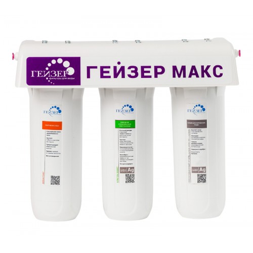 В фильтрах серии Гейзер МАКС реализованы все известные методы очистки воды: механическая фильтрация, ионный обмен, сорбция, обезжелезивание и обеззараживание.